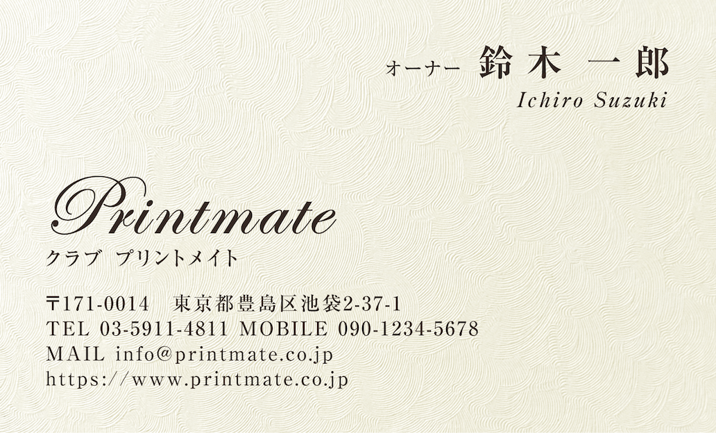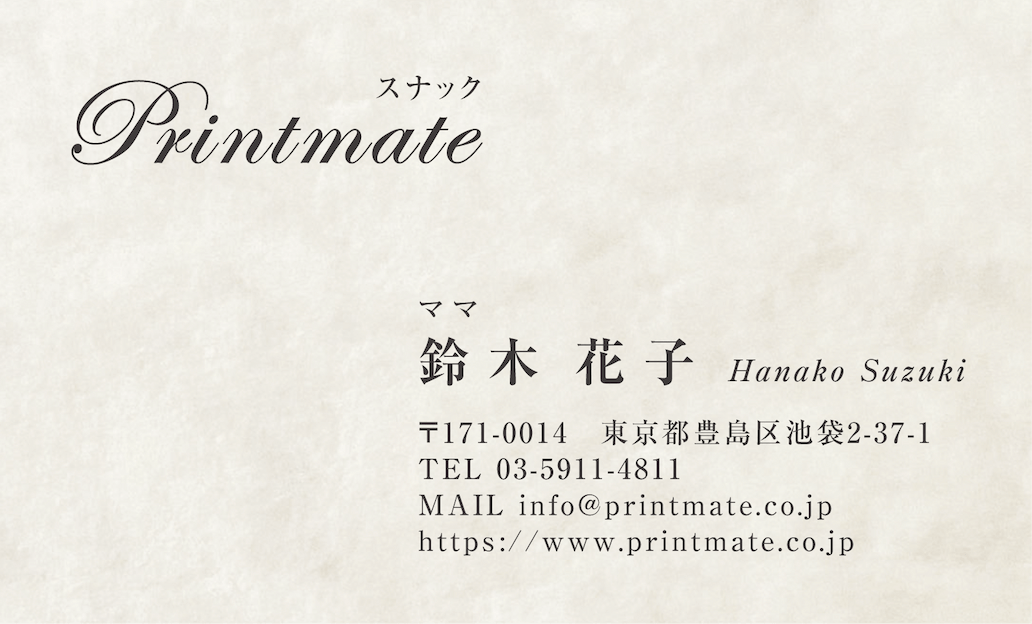 デザイン名刺(飲食店・カフェ・レストラン・バー)はお店・店舗や個人事業向けのテンプレートで名刺作成できます。ロゴ・写真・QR入れOK!即日印刷・当日受取り可能