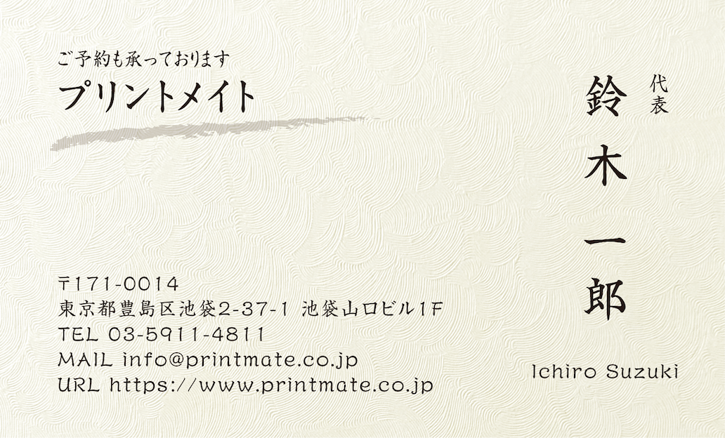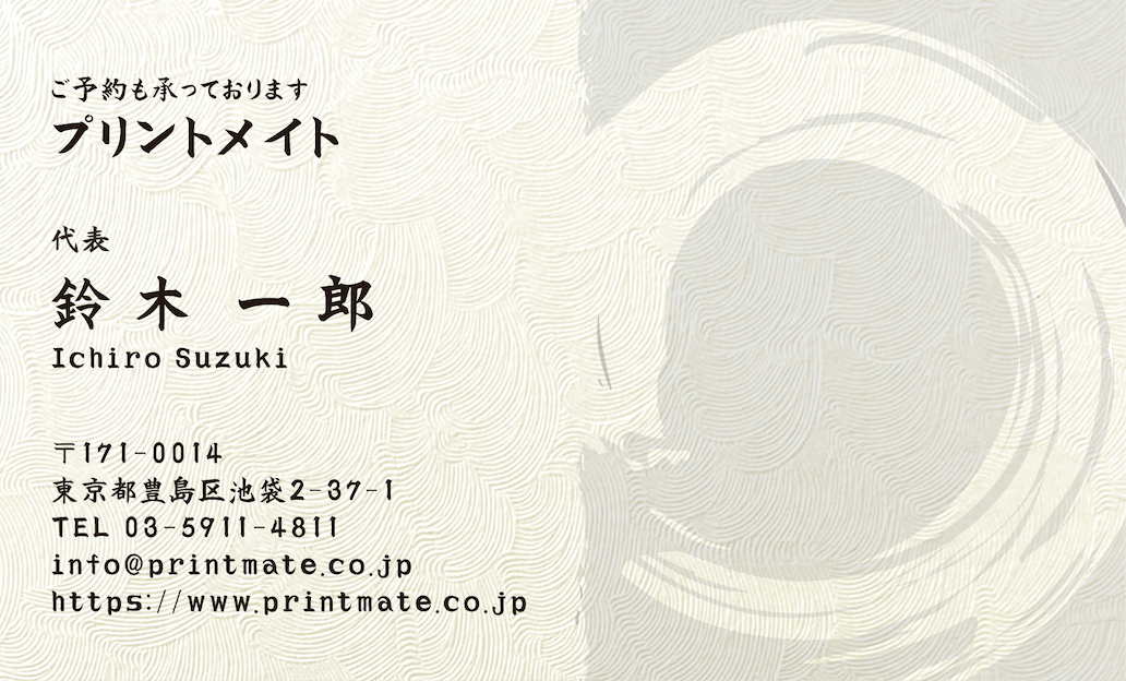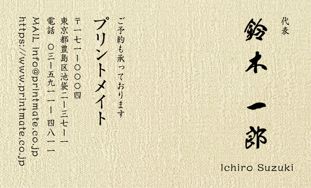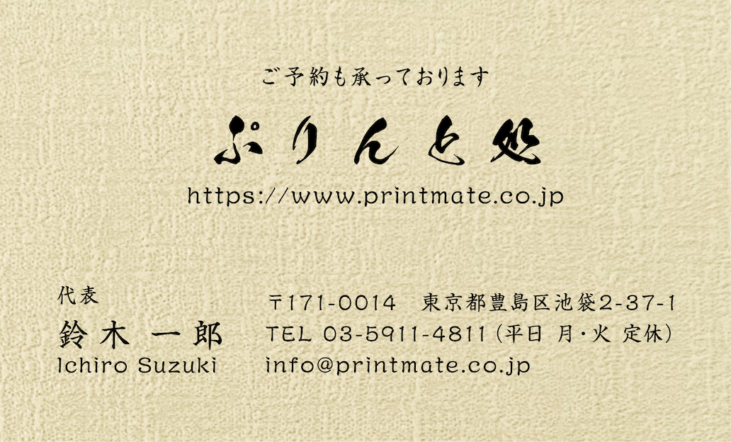 デザイン名刺(飲食店・店舗)のデザインテンプレートです。縦型名刺、横型名刺ともに書体変更が可能です。