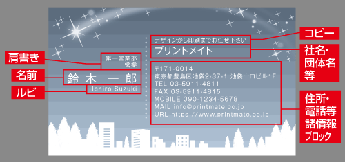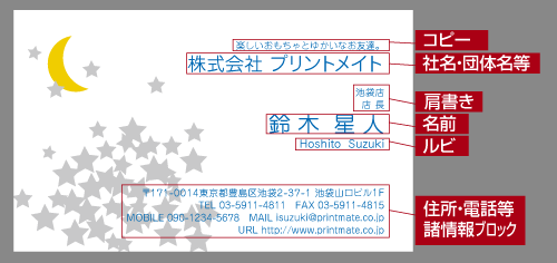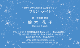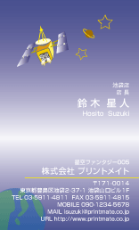 デザイン名刺(星・月・宇宙)は星・月・宇宙・地球・流れ星・星座・夜空などをテンプレート見本で名刺作成できます。ロゴ・写真・QR入れOK!即日印刷・当日受取りできます。