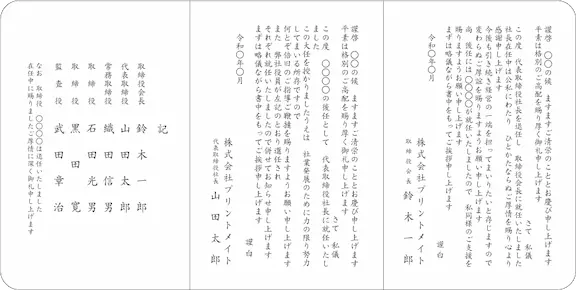 用途に合わせて「署名タイプ」「連名タイプ」などの基本レイアウトをご用意しております