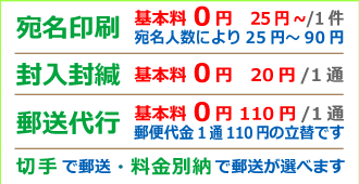 もちろん、挨拶状印刷のみ、宛名印刷まで、封入まで等ご都合に合わせてお選びいただくことができます。