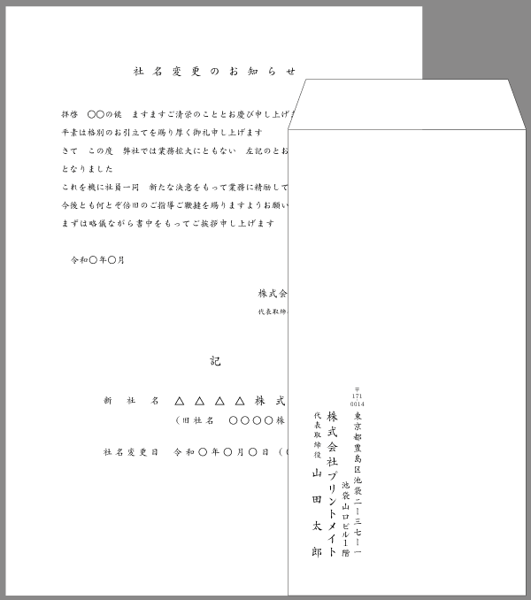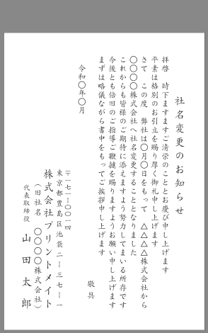 社名変更の標準的な例文、変更理由などにかかわらずお使いいただけます