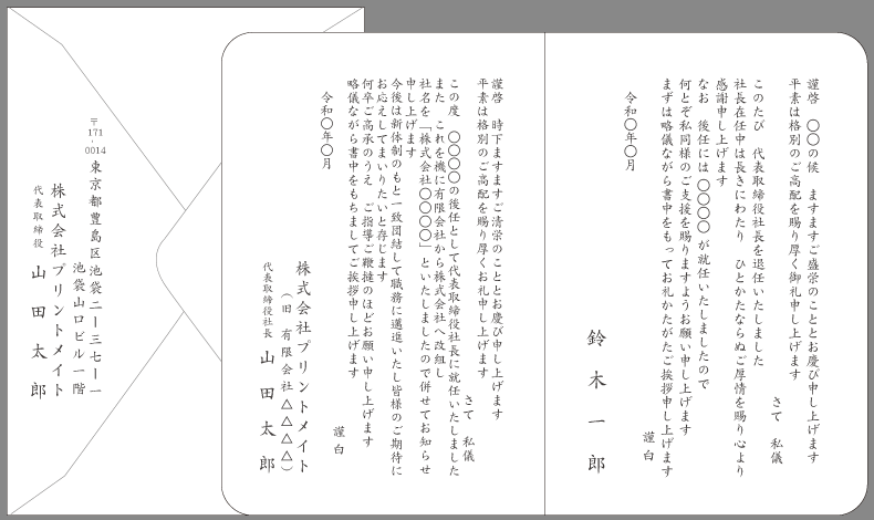 社長交代に併せて社名変更を行う際の挨拶状例文その1