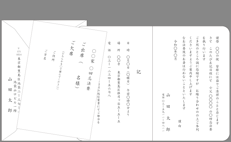 これらの年忌法要を行う際に出す案内状が「一周忌法要の案内状」「年忌法要の案内状」です。
