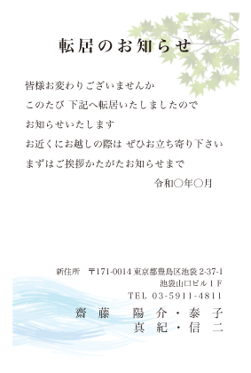 年賀状・暑中見舞い等、他の挨拶状で引越しをお知らせする場合