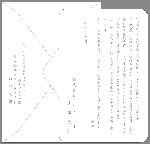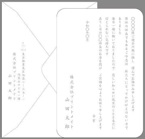 自社の社員へのお悔み状の書き方 文例を選んで1枚から即日印刷・当日発送可