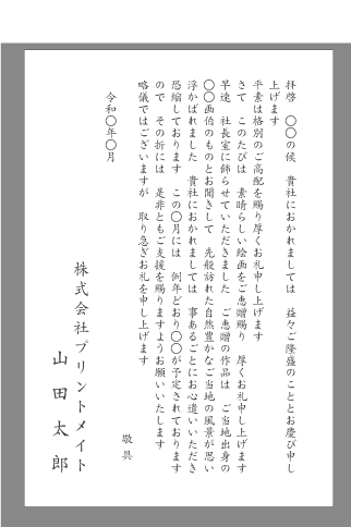 贈り物・寄贈お礼状は、はがき・挨拶状のタイプも選んで印刷可能。大礼紙もあります。