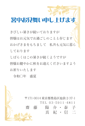 金の飾り枠 - 残暑見舞いも選べます